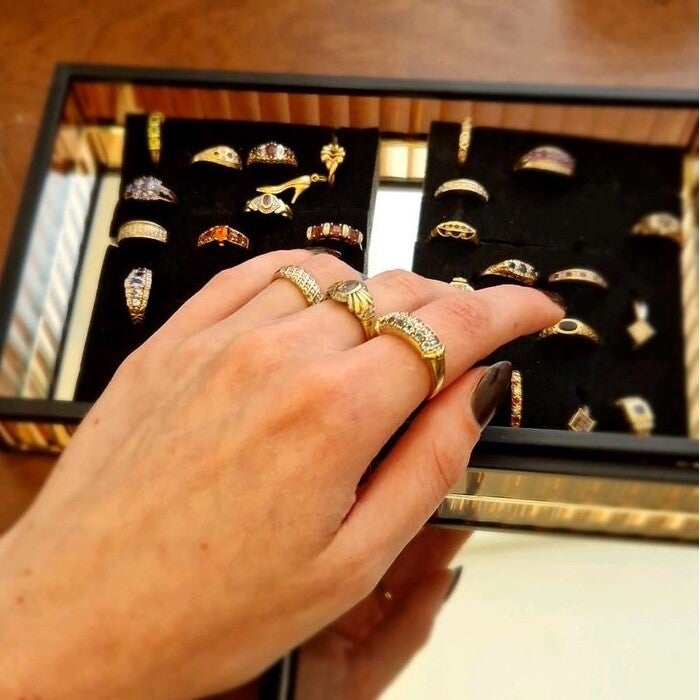 Al onze vintage & pre-loved sieraden ‘have had a life’. Kostbaarheden met geschiedenis. Ze zijn geselecteerd op hun unieke schoonheid en staat van gebruik. Ze zijn schoongemaakt, gecheckt en daar waar nodig ook gerepareerd zodat zij met liefde en trots gedragen en gezien mogen worden. Bijzondere kenmerken en oneffenheden, anders dan een regulier gebruikt sieraad zou kunnen hebben, staat genoteerd bij de omschrijving van het sieraad.