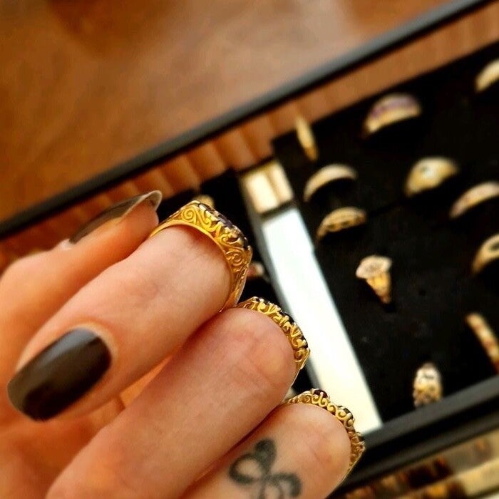 Al onze vintage & pre-loved sieraden ‘have had a life’. Kostbaarheden met geschiedenis. Ze zijn geselecteerd op hun unieke schoonheid en staat van gebruik. Ze zijn schoongemaakt, gecheckt en daar waar nodig ook gerepareerd zodat zij met liefde en trots gedragen en gezien mogen worden. Bijzondere kenmerken en oneffenheden, anders dan een regulier gebruikt sieraad zou kunnen hebben, staat genoteerd bij de omschrijving van het sieraad.