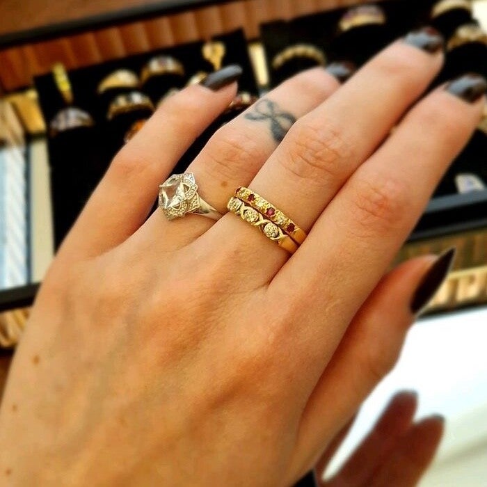 Al onze vintage & pre-loved sieraden ‘have had a life’. Kostbaarheden met geschiedenis. Ze zijn  geselecteerd op hun unieke schoonheid en staat van gebruik. Ze zijn schoongemaakt, gecheckt en daar waar nodig ook gerepareerd zodat zij met liefde en trots gedragen en gezien mogen worden. Bijzondere kenmerken en oneffenheden, anders dan een regulier gebruikt sieraad zou kunnen hebben, staat genoteerd bij de omschrijving van het sieraad.