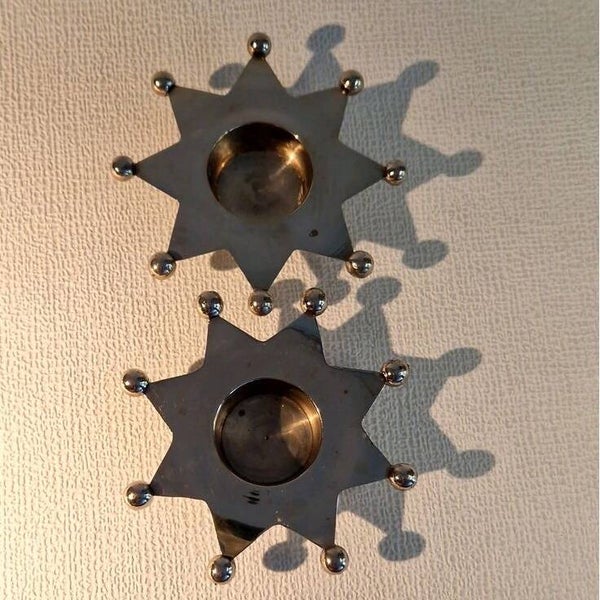 Set van twee waxinelichthouders in de vorm van 'sherrif' sterren.