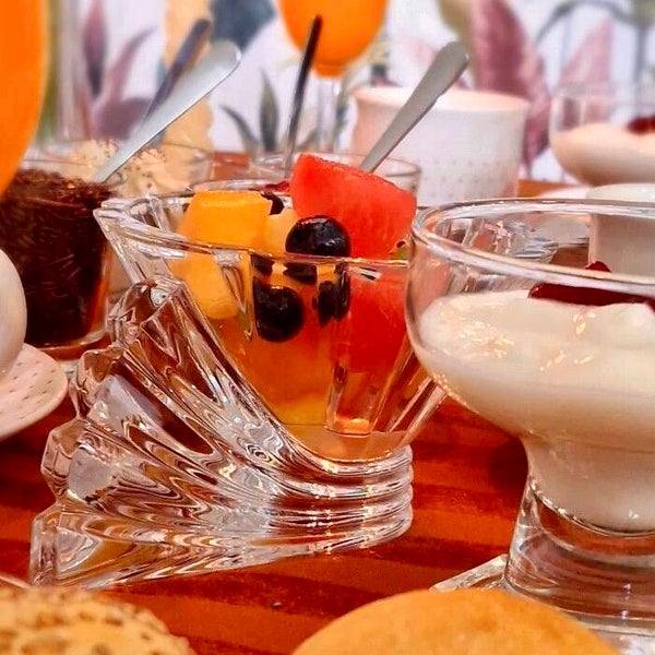 Set van 5 vintage glazen coupes. De 3D bubbel in de voet is ge-wel-dig en doet onze vintage harten kloppen. Ze zijn 9 cm hoog en 9,5 cm breedIn perfecte staat