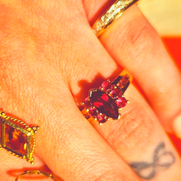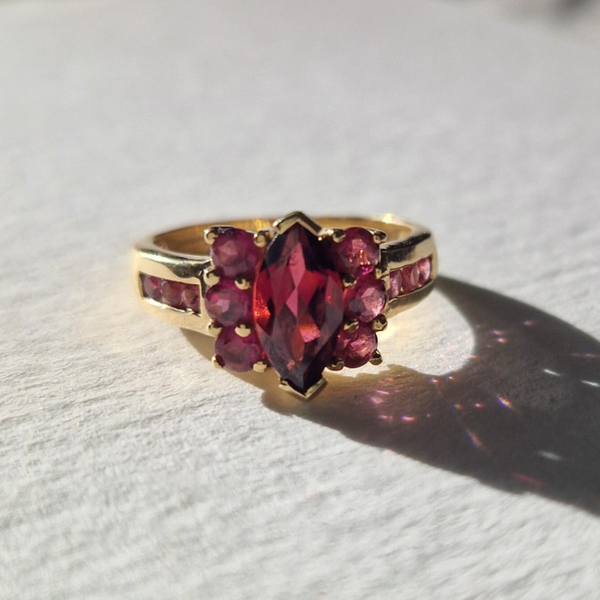 The bold and gold garnet marquise ring